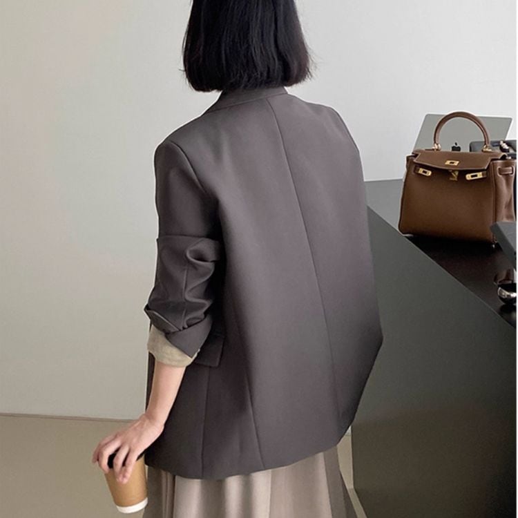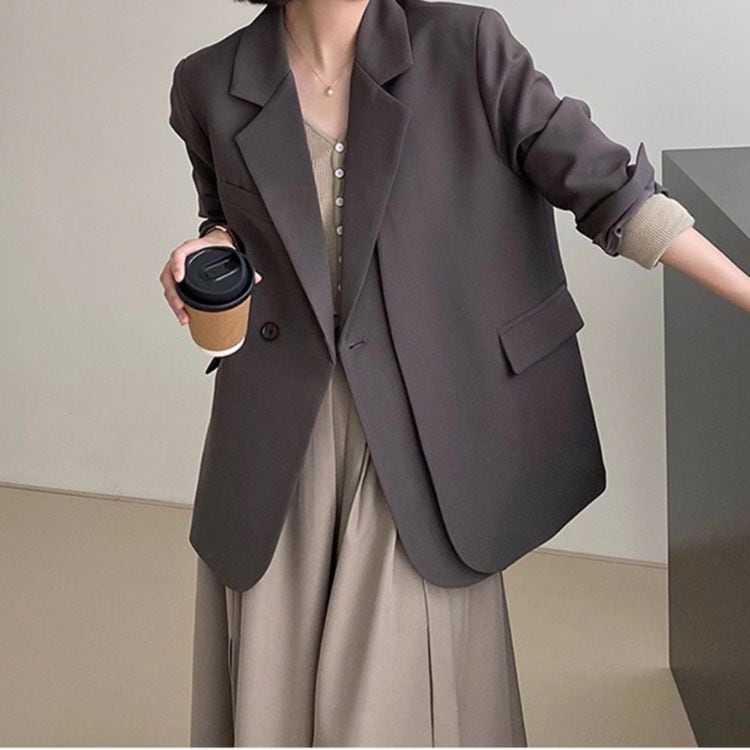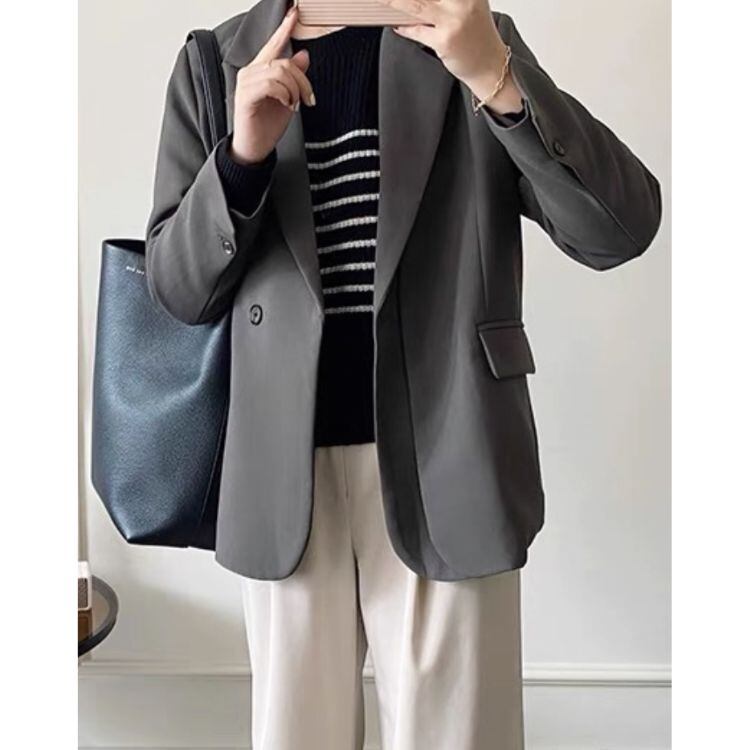 上品な印象を与えつつ、オーバーサイズのシルエットでリラックスした着心地を実現しています。