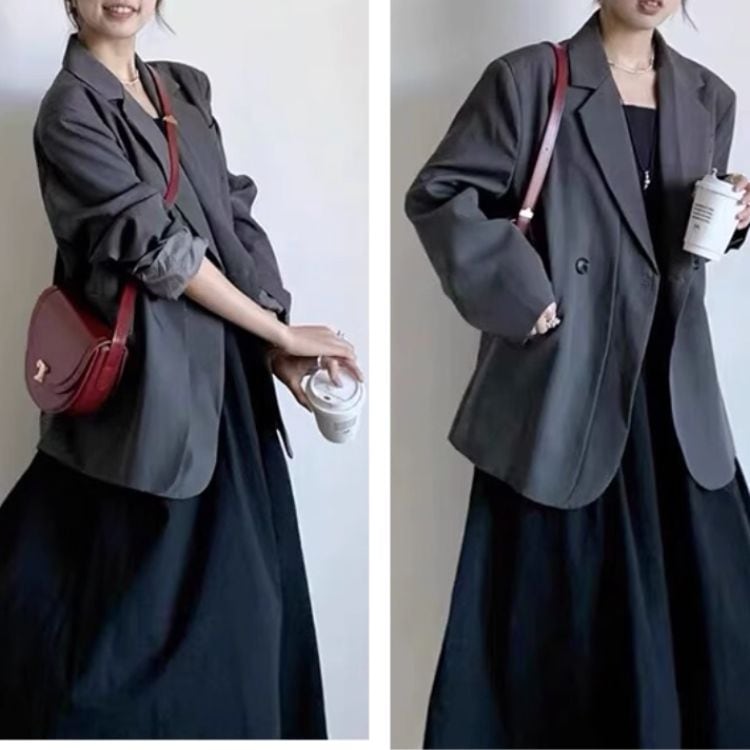 オーバーサイズ テーラードカラー ロング丈ジャケット 2col N00004