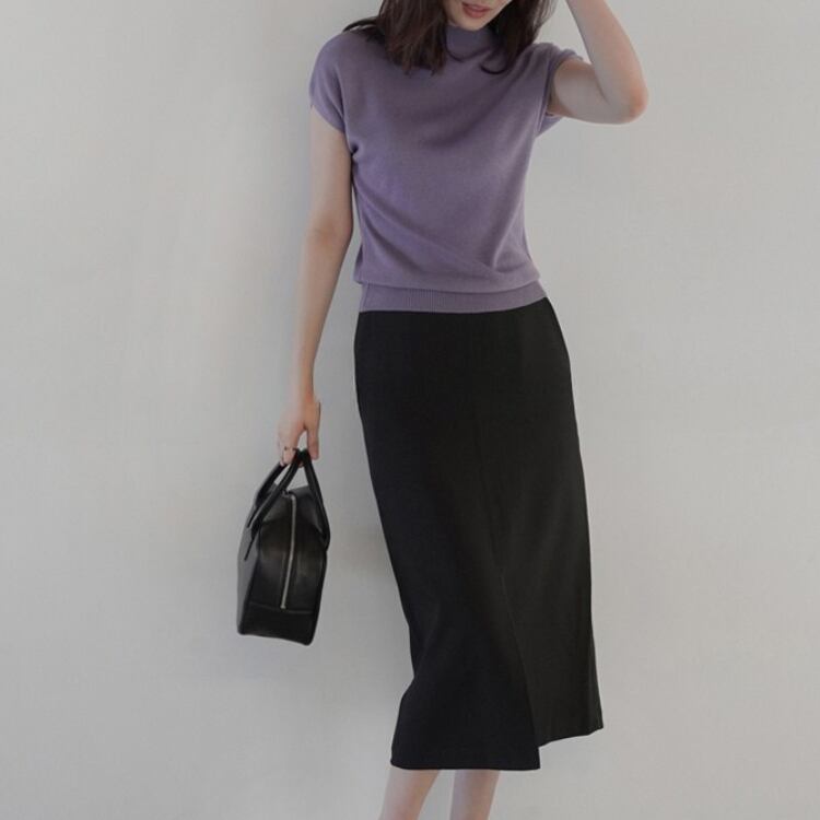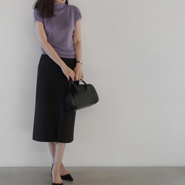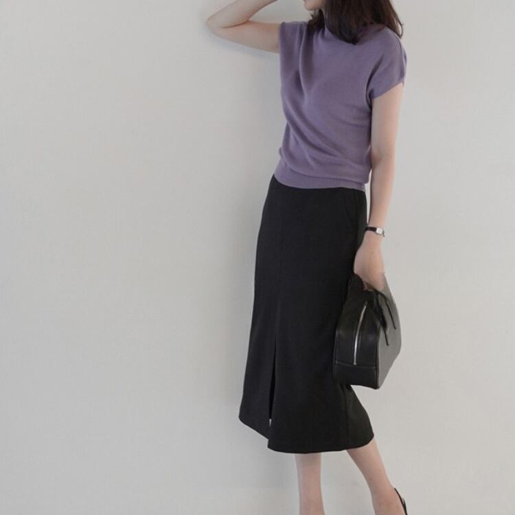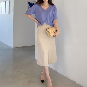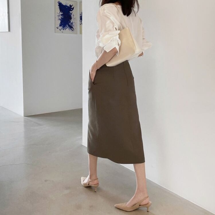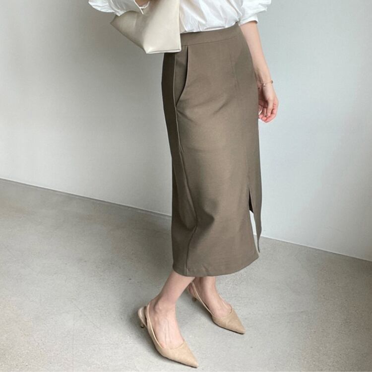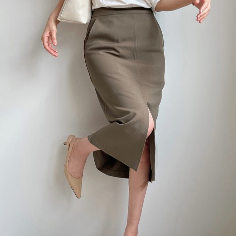 ハイウエスト フロントスリット ミディ丈タイトスカート 3col N00007