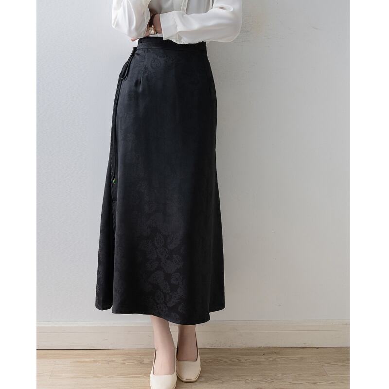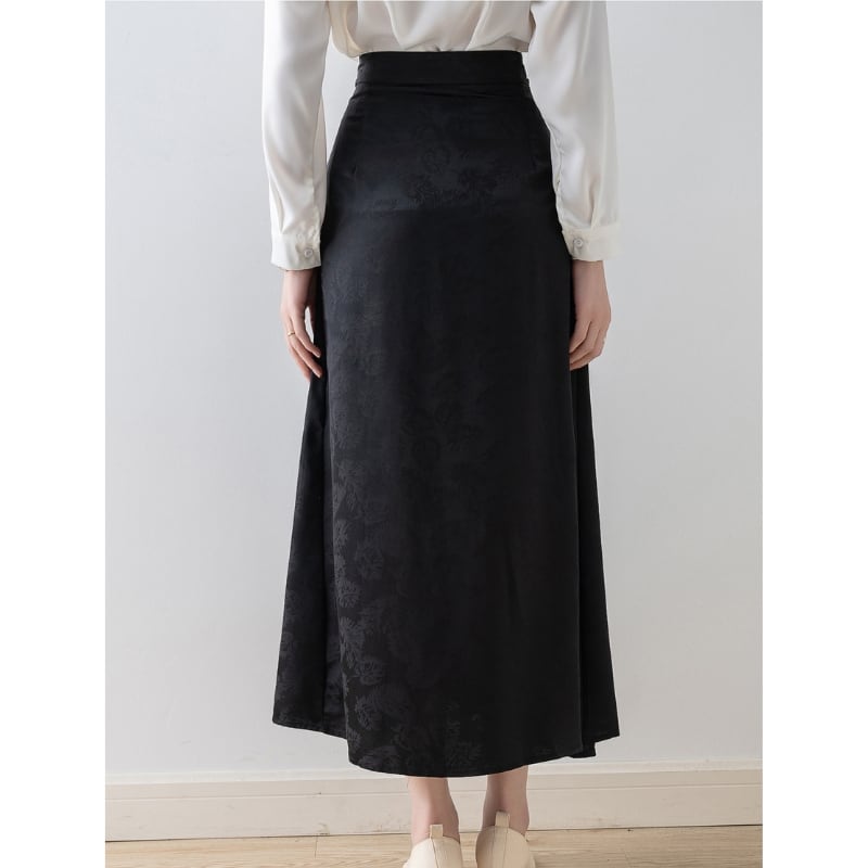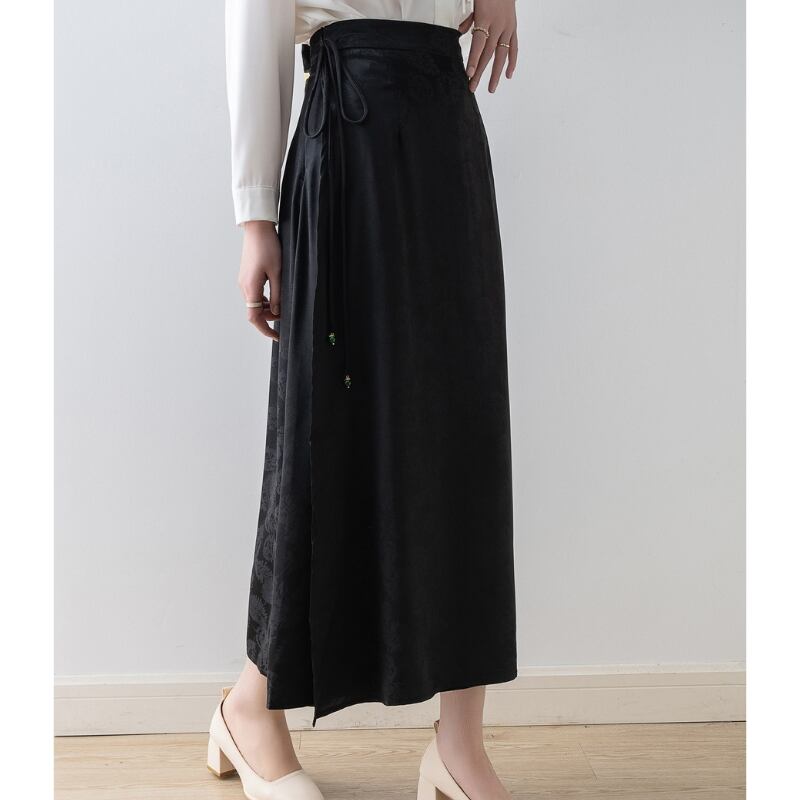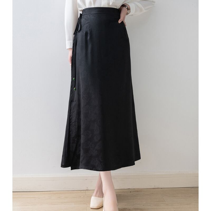 ウエスト紐がポイントのAラインマキシスカート。