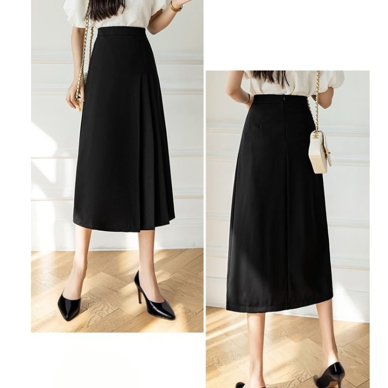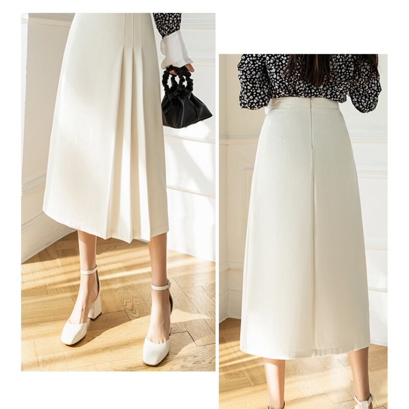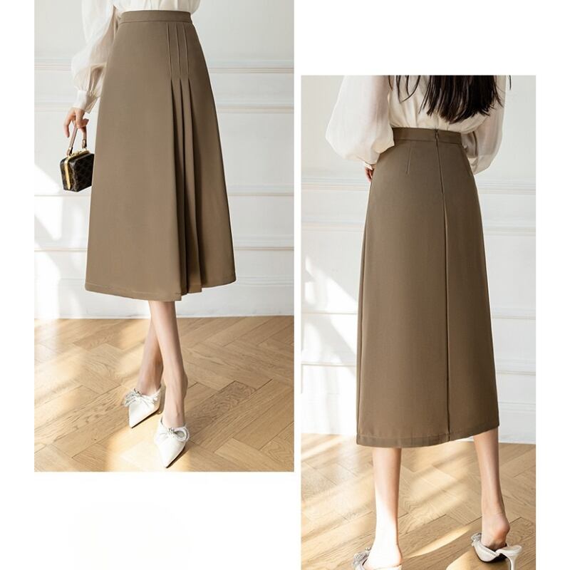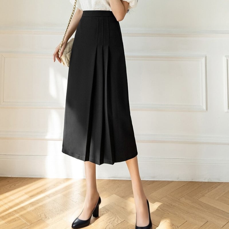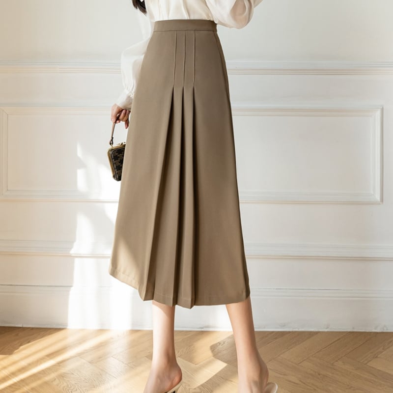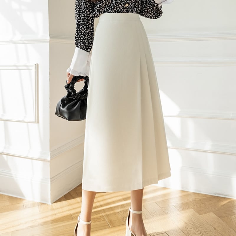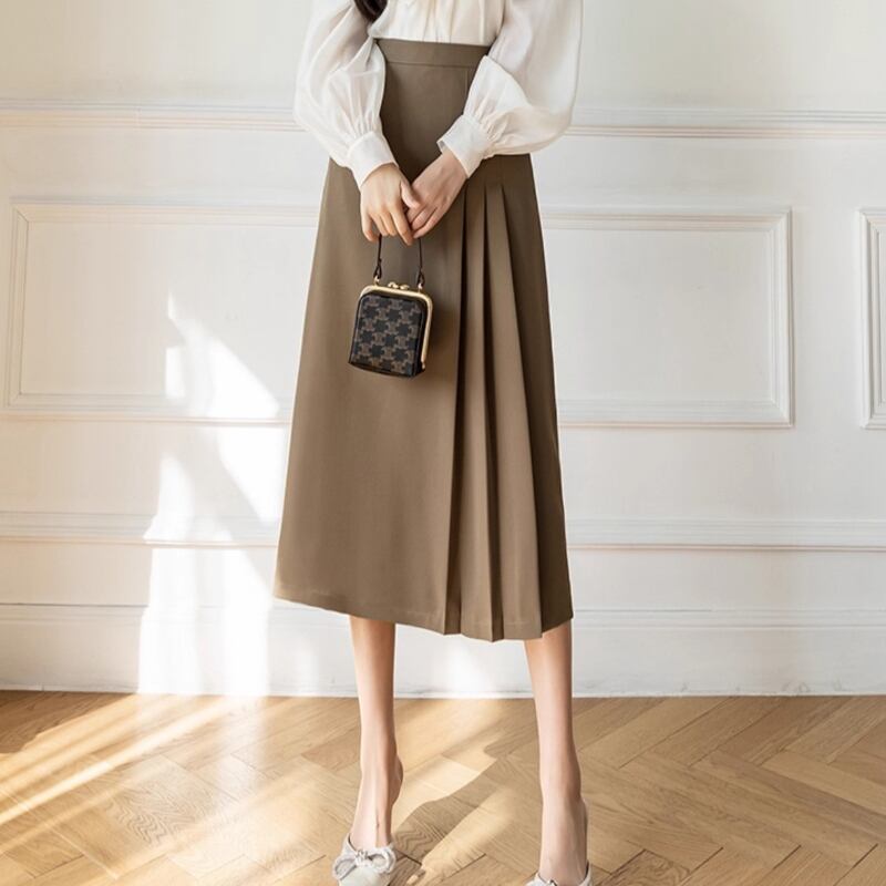 Aラインのシルエットとミディ丈が、上品で洗練された印象を与えます。