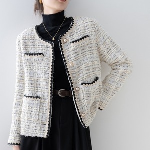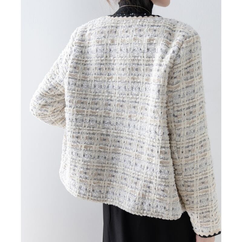 ツイード調 パイピング飾り ロングスリーブジャケット 1col N00017
