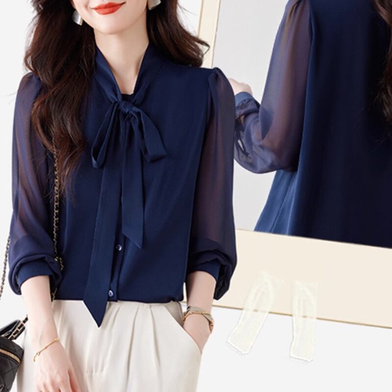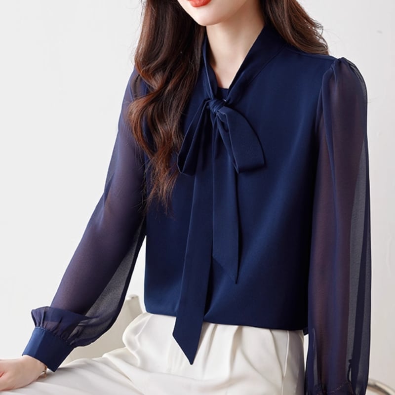 きちんと感と可愛らしさを兼ね備えた、ボウタイブラウス。