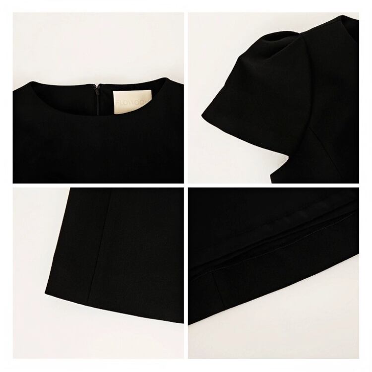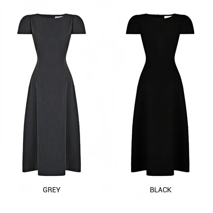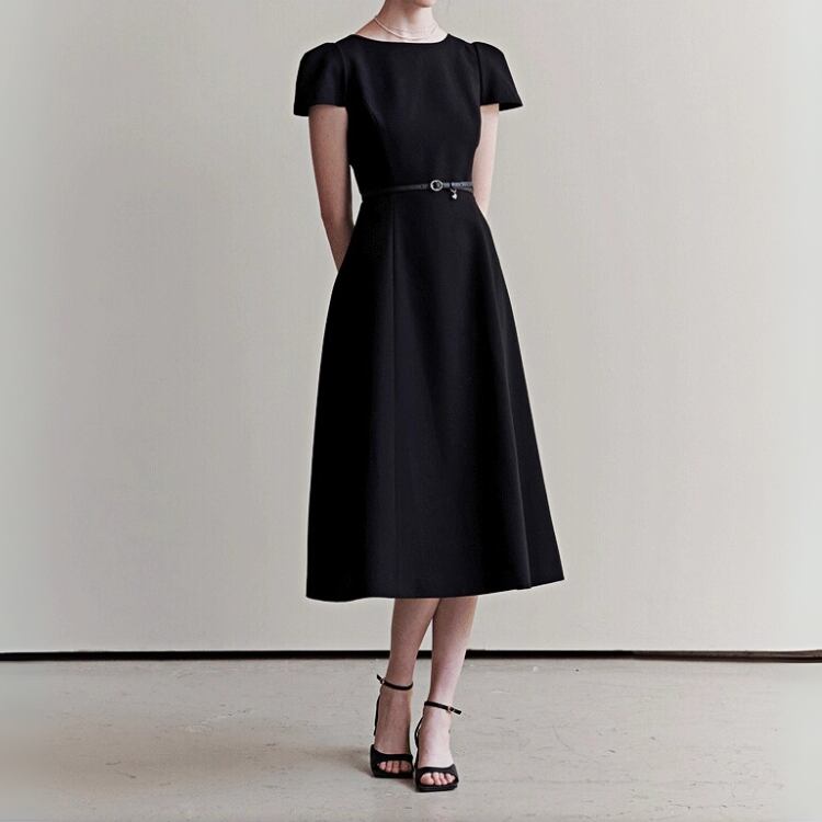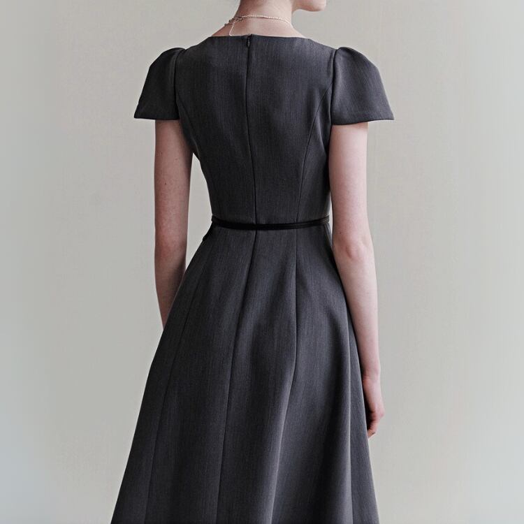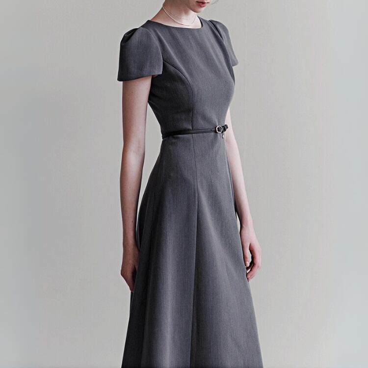 パフスリーブ Aラインシルエット ミディ丈ワンピース 2col N00028