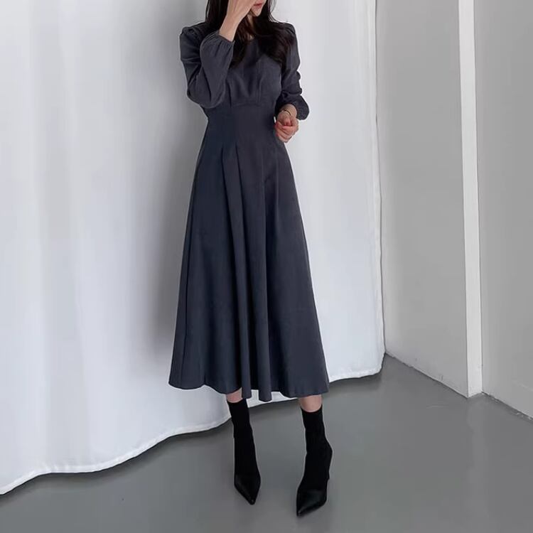 フレアスカート ロングスリーブ ワンピース 3col N00030