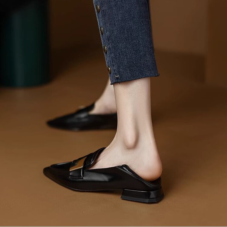 バックル付きスリップオンポインテッドトゥローファーは、洗練されたデザインと快適な履き心地を両立した一足です。