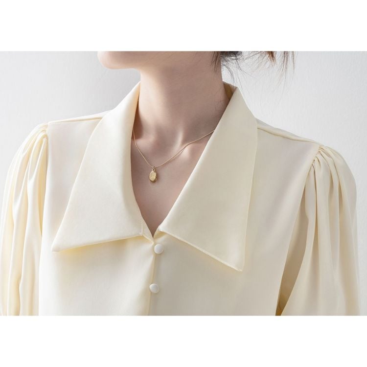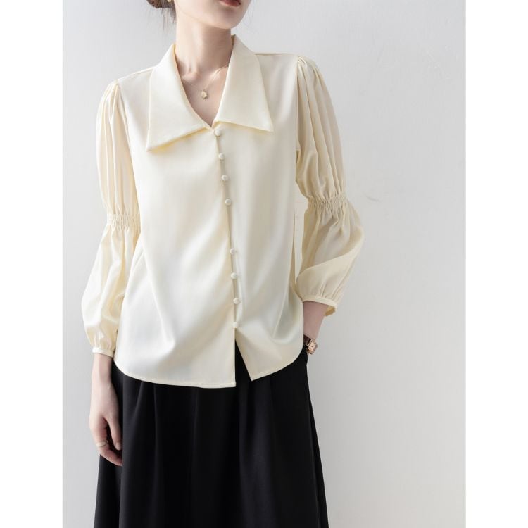 ランタンスリーブ ワイドカラー ボタンブラウス 1col N00051