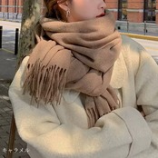 大判サイズで様々な巻き方が楽しめる、フリンジ付きストールです。