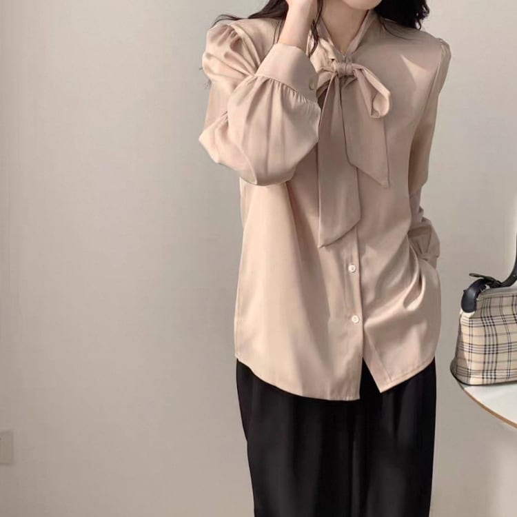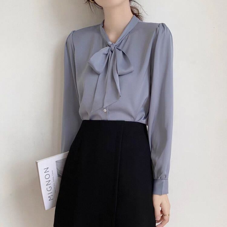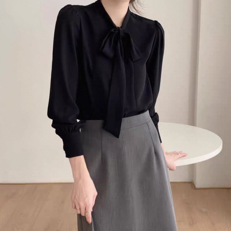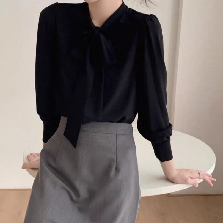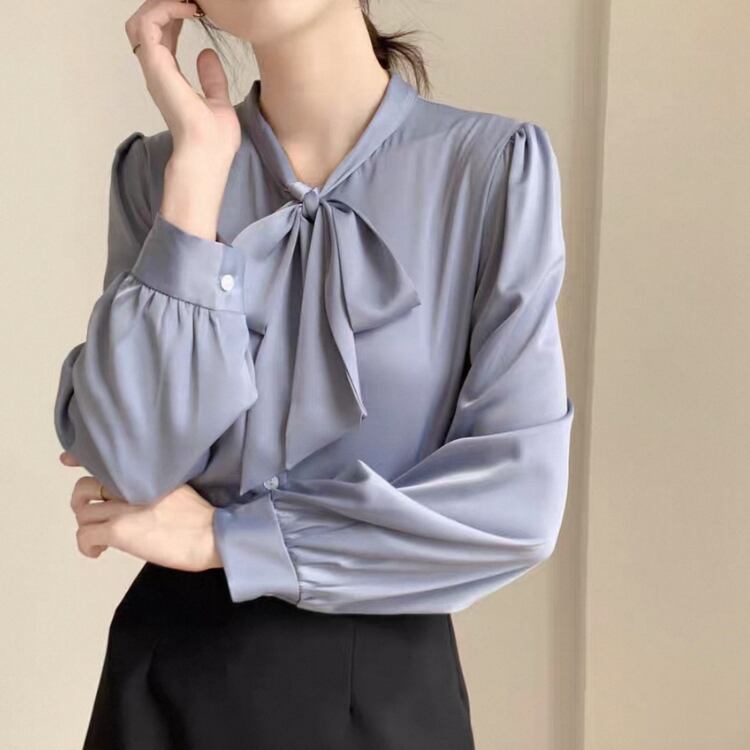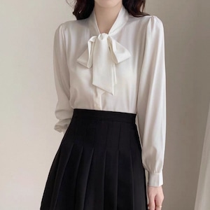 スタンドカラー ボウタイ ブラウス 4col N00065