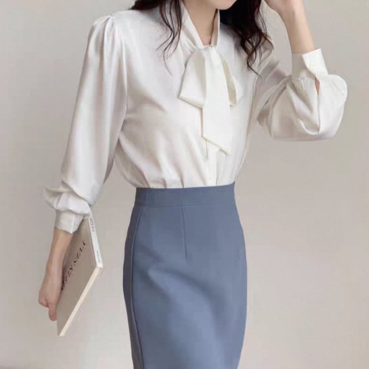 ボウタイがポイントのブラウスは、着るだけでこなれた雰囲気を演出。