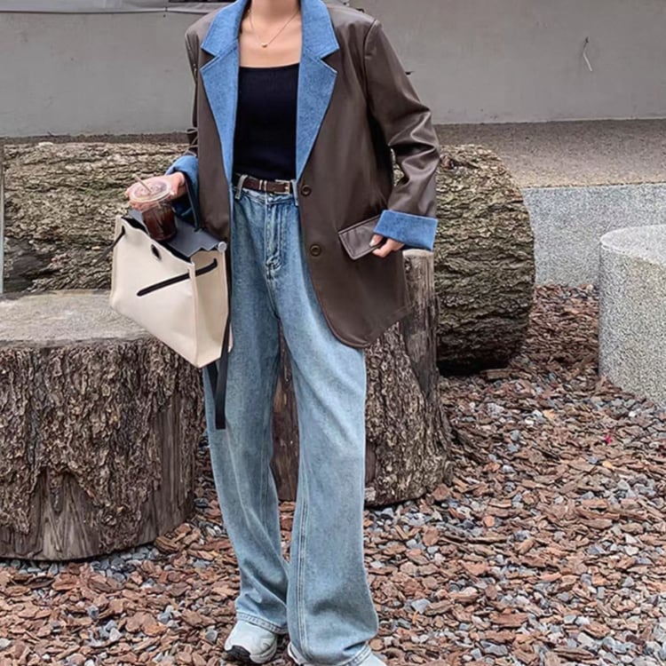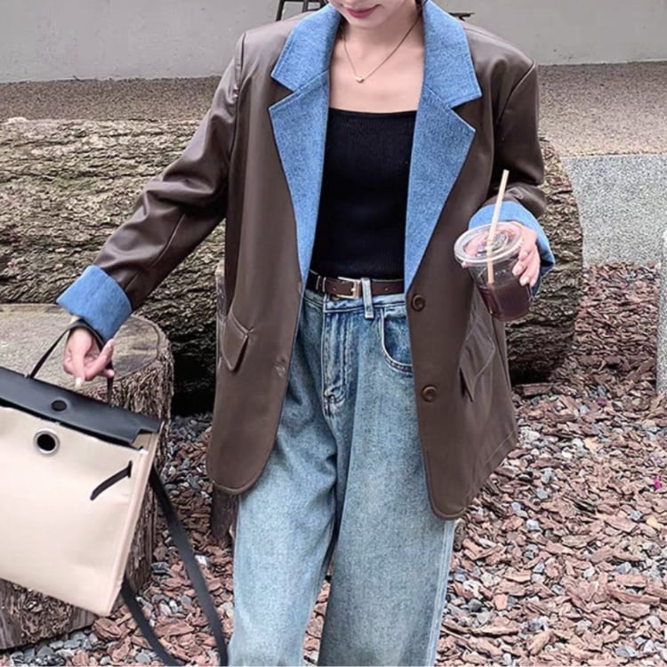 配色デザイン オーバーサイズ テーラードジャケット 1col N00072