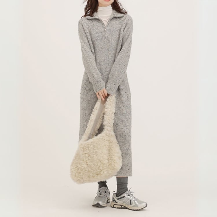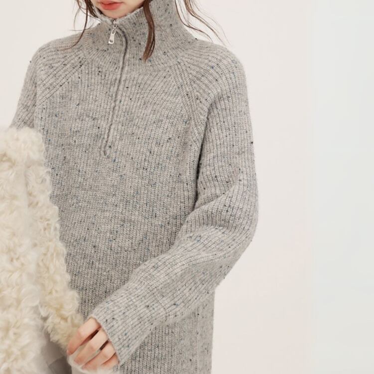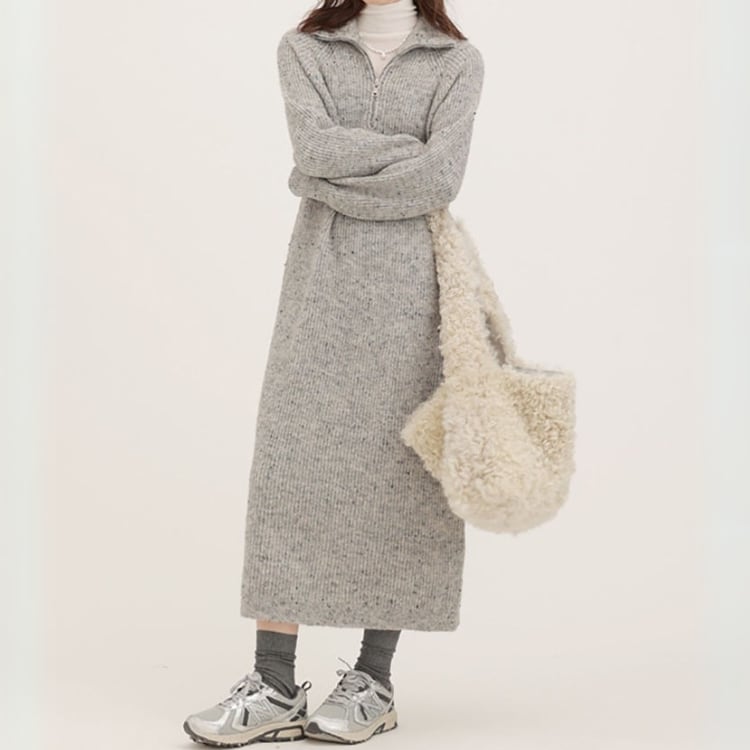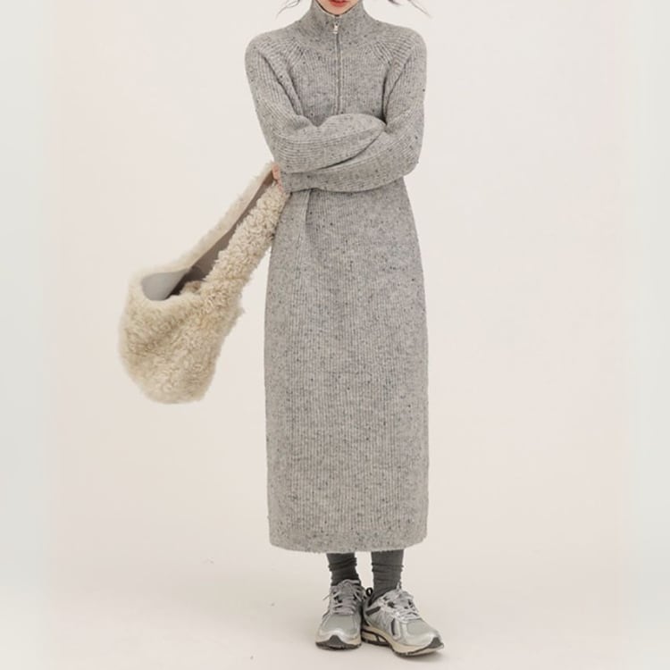 一枚で着映えする、リブ編みハイネックロングワンピース。