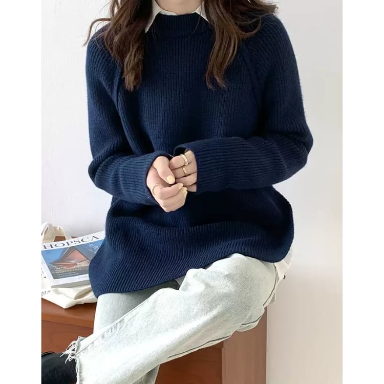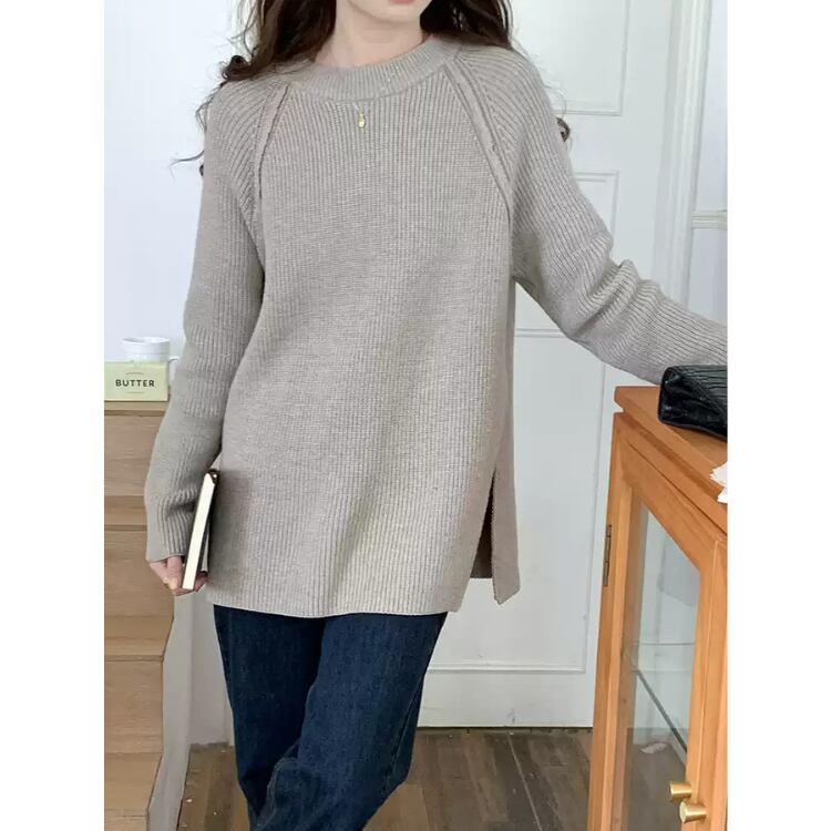 サイドスリット ラグランスリーブ ニットプルオーバー 2col N00087