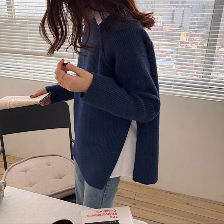 大人っぽく着こなせる、サイドスリットがポイントのニットプルオーバー。