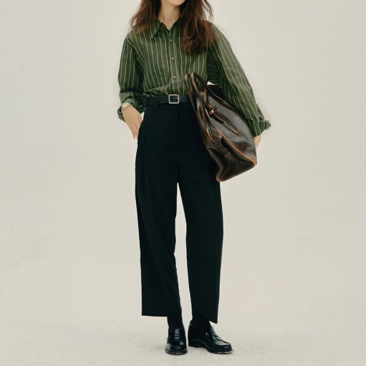 ワイドシルエットでリラックス感がありながら、上品な印象も与えます。