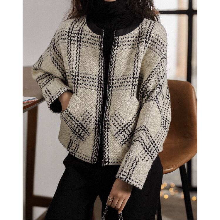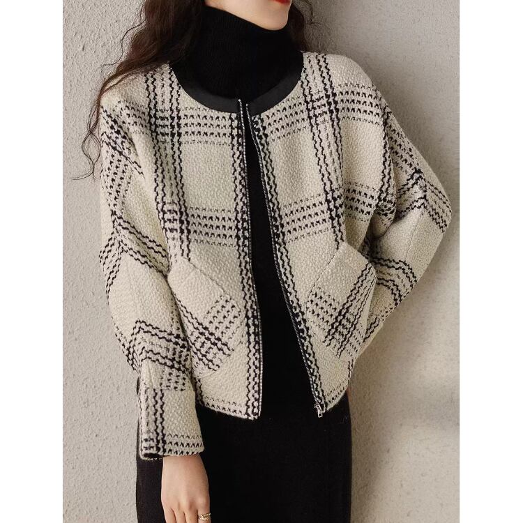 ツイードチェック柄 フロントジッパー ジャケット 1col N00089