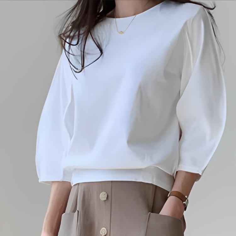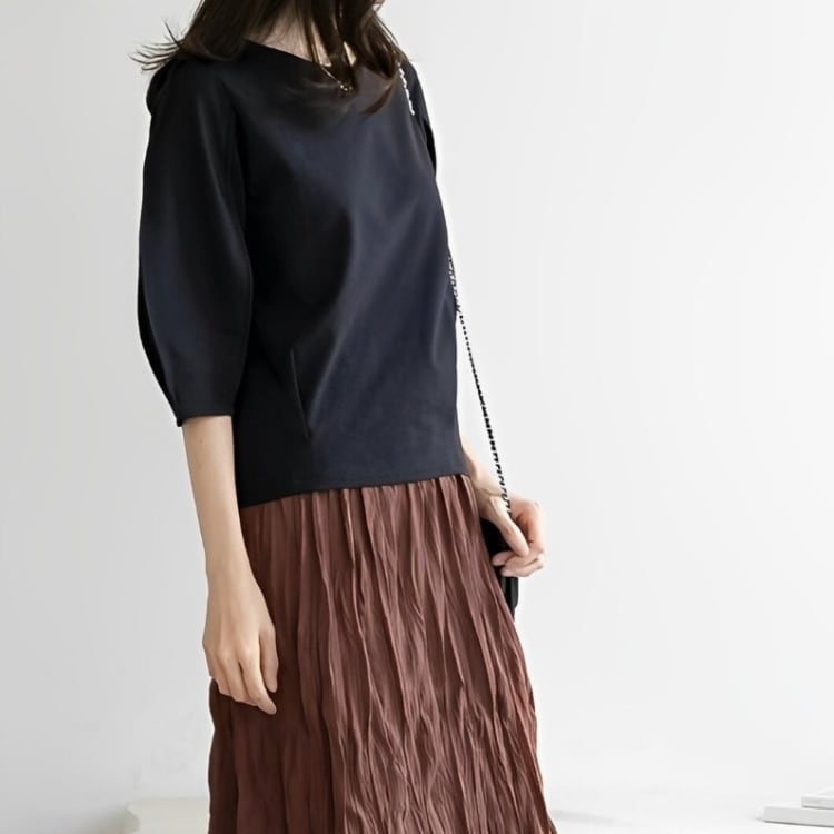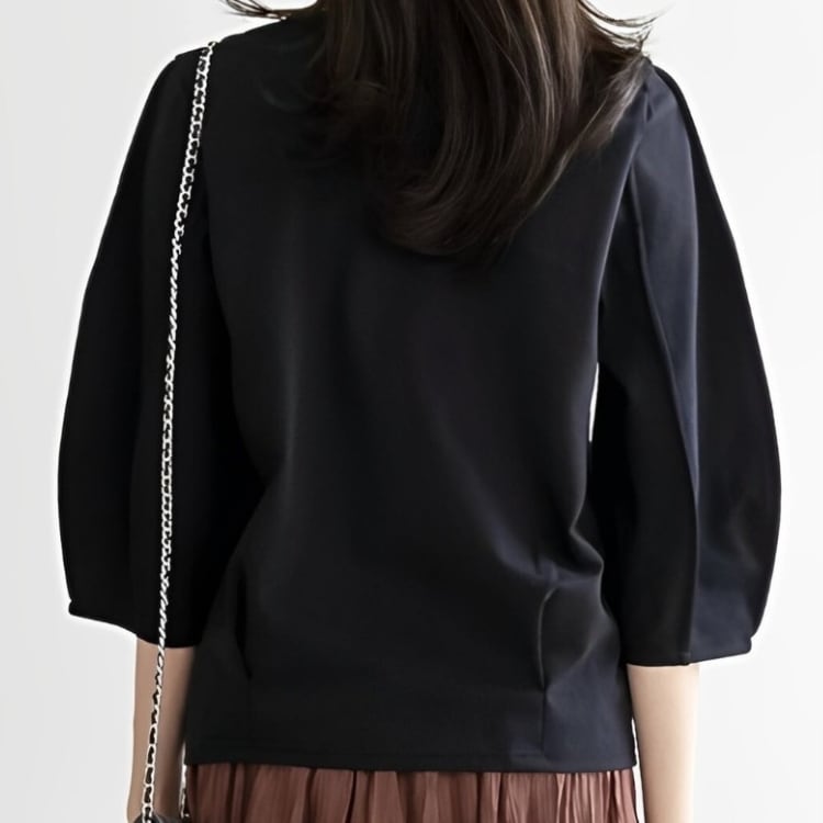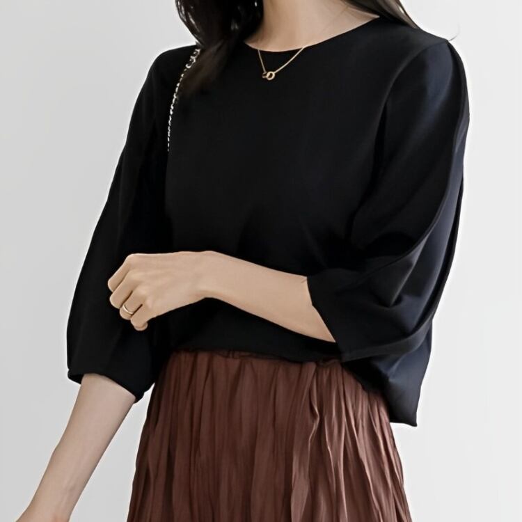 ラウンドネック パフスリーブ 七分袖トップス 2col N00099