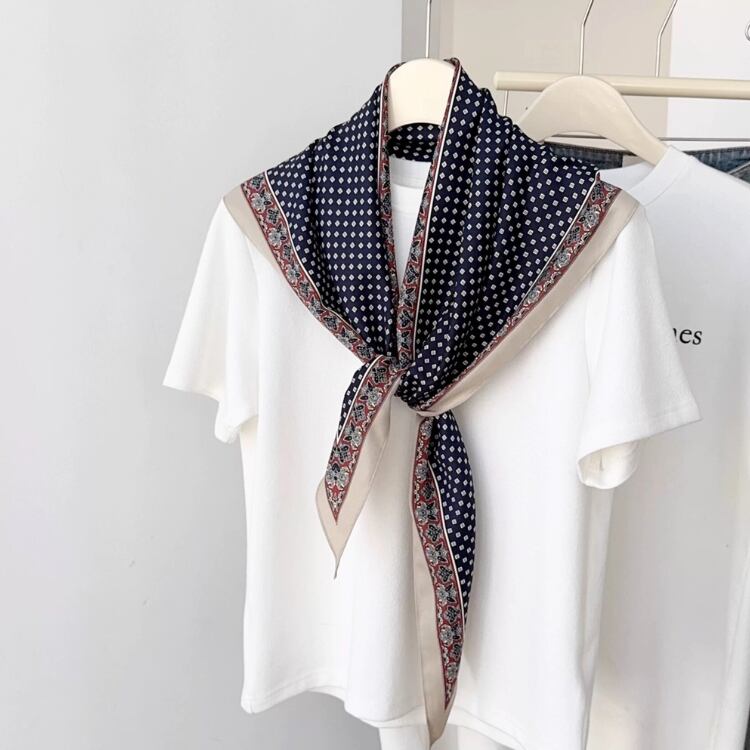 レトロなドットとペイズリー柄が織りなす、おしゃれなトライアングルスカーフ。