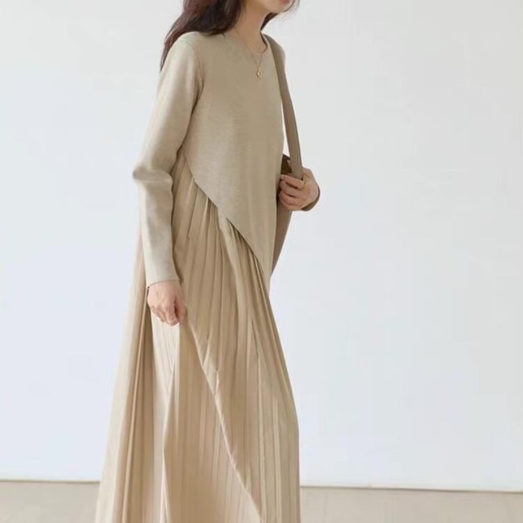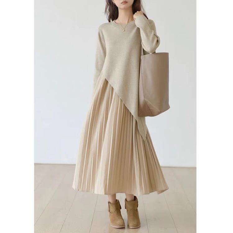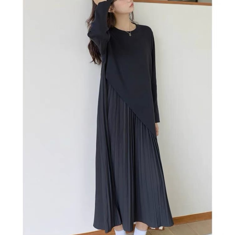 アシンメトリー ロングプリーツ レイヤードワンピース 2col N00114