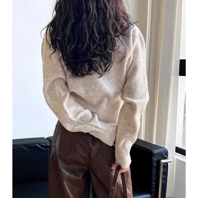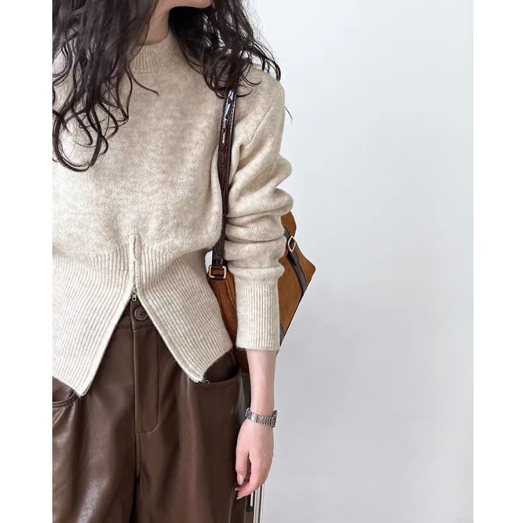 ボトルネック センターフロントジップ ニットプルオーバー 2col N00111