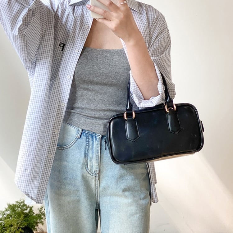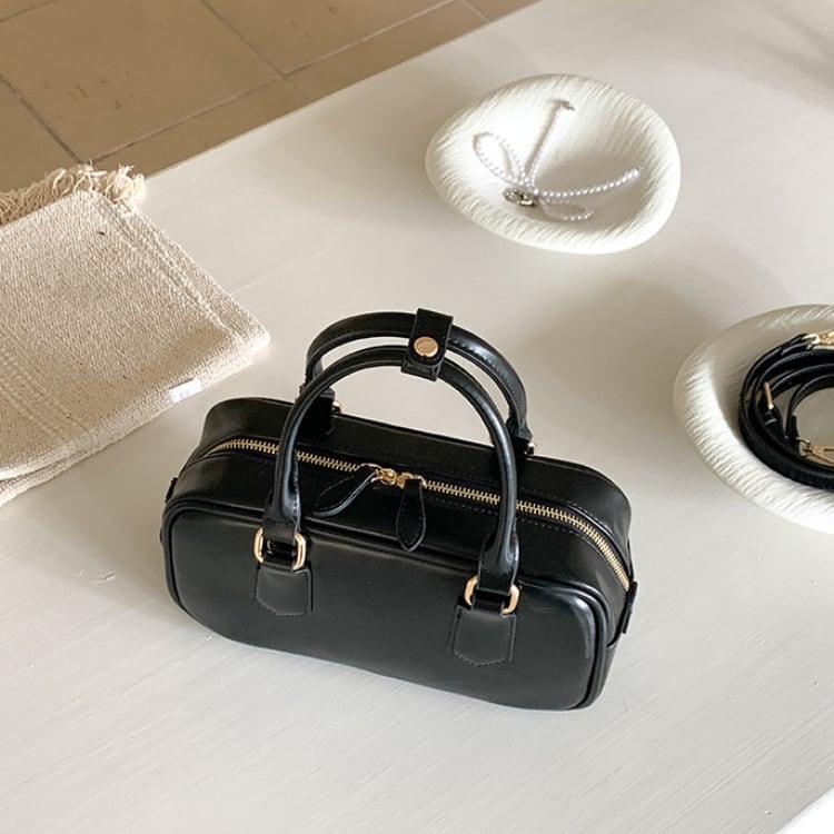 ダブルファスナー ミニボストンバッグ ショルダーストラップ付き 2col N00118