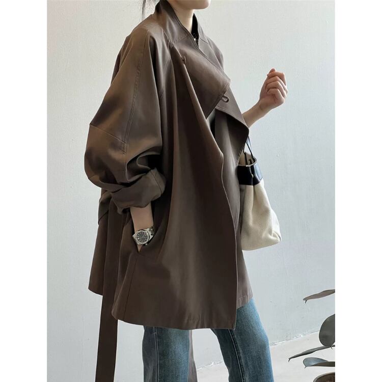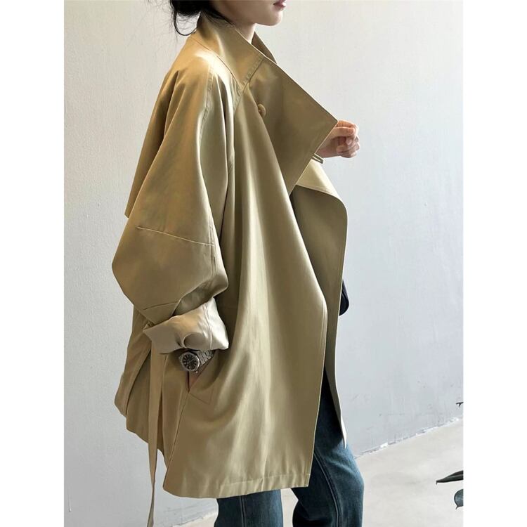 大人っぽい着こなしが叶う、スタンドカラーのベルト付きショートコート。