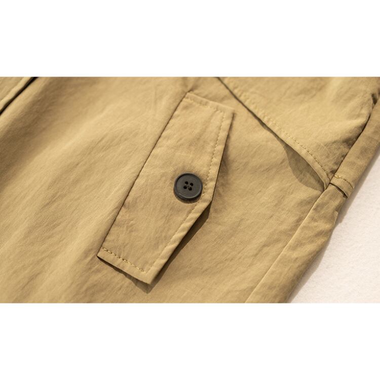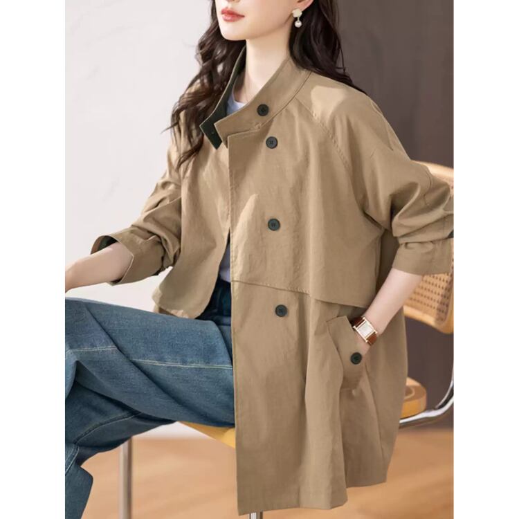 スタンドカラーと比翼仕立てが上品な印象を与え、デイリーユースからオフィススタイルまで幅広く活躍します。