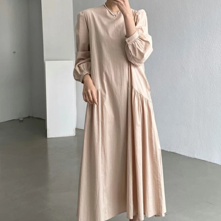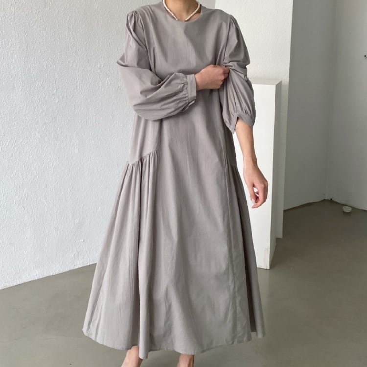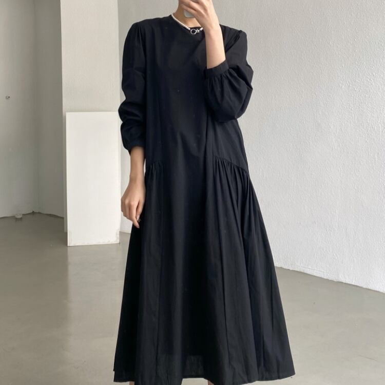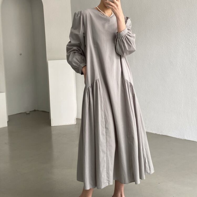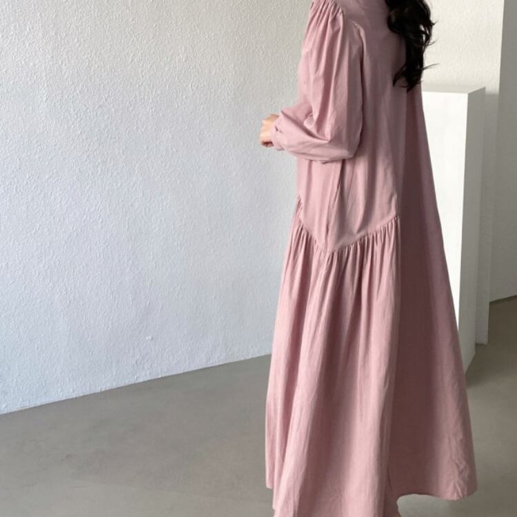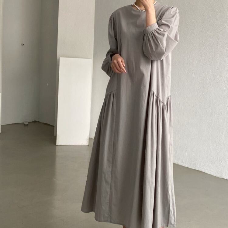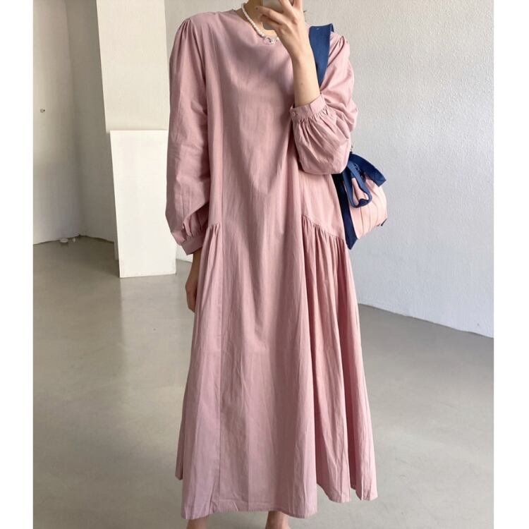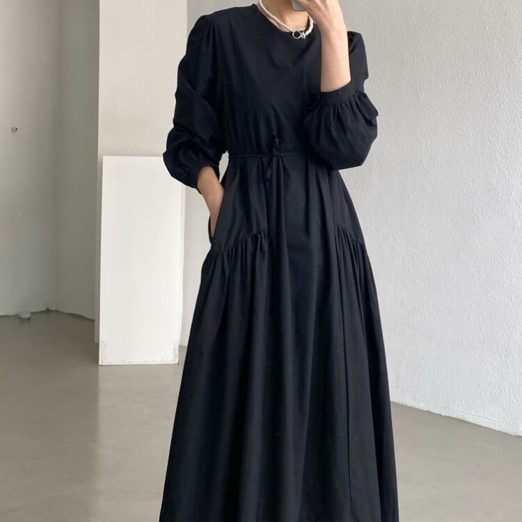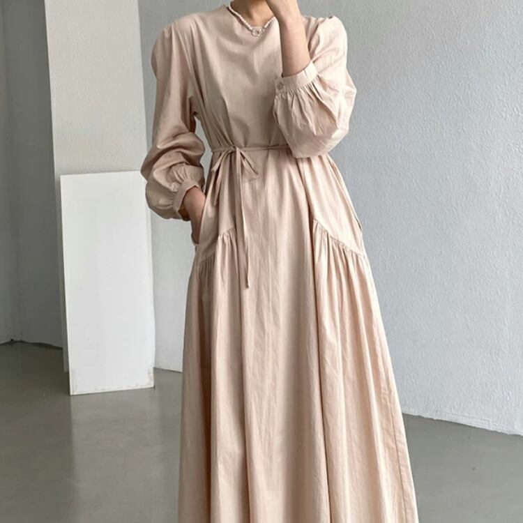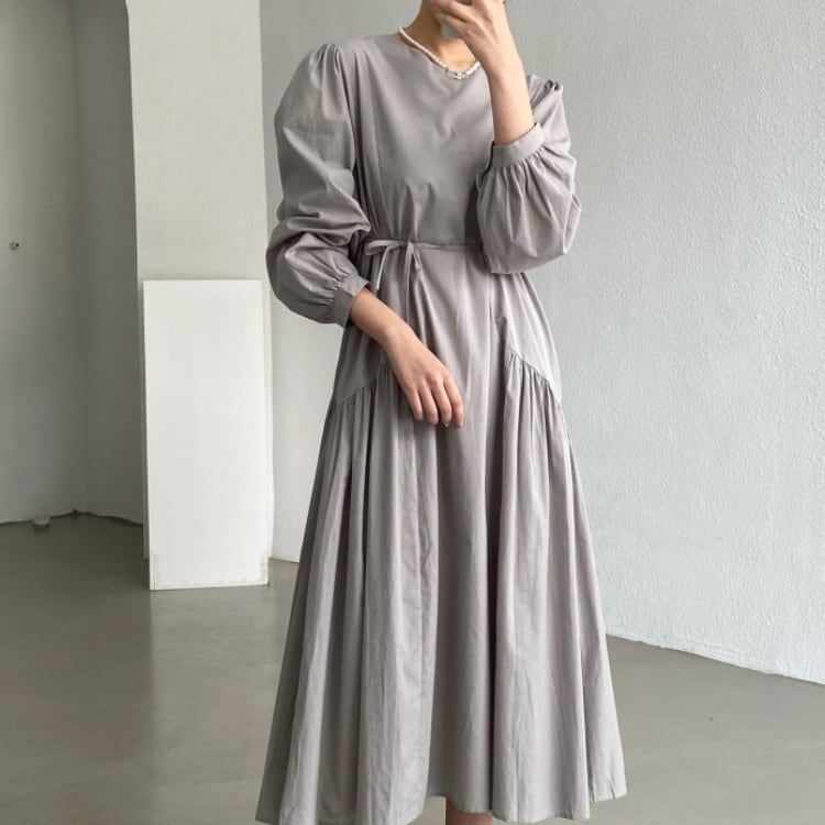 ゆったり ウエストリボン付き フレアワンピース 4col N00143