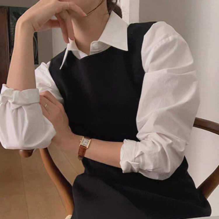 ラウンドネックとフレアシルエットで、女性らしい優しげな印象に。