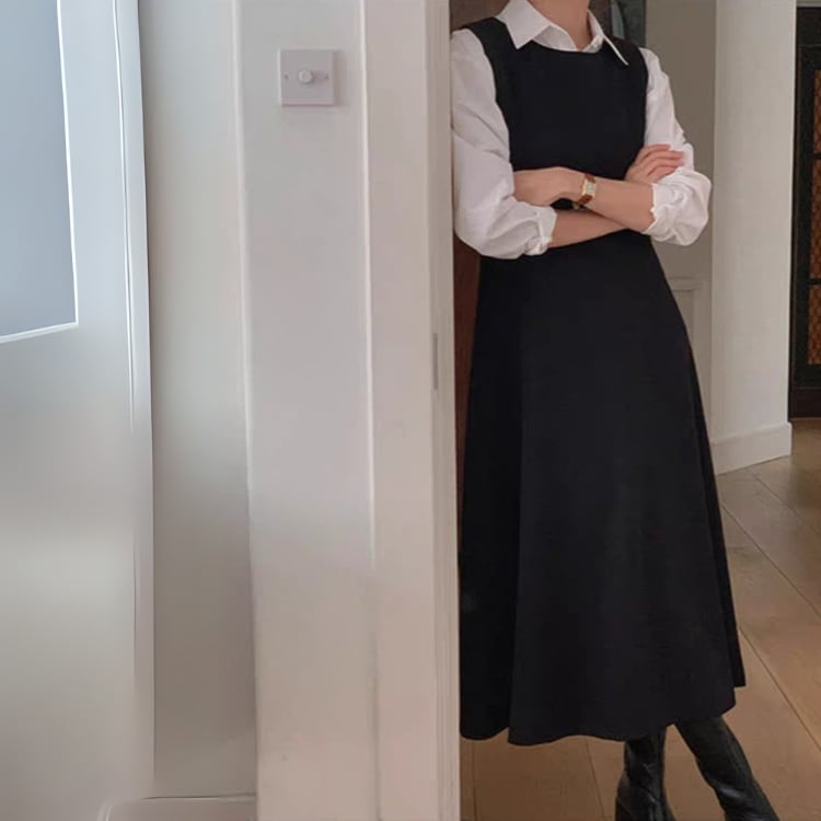 ラウンドネック フレアシルエット ジャンパースカート 1col N00151