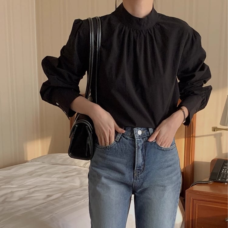 ハイネック パフスリーブ ロングスリーブシャツ 2col N00153