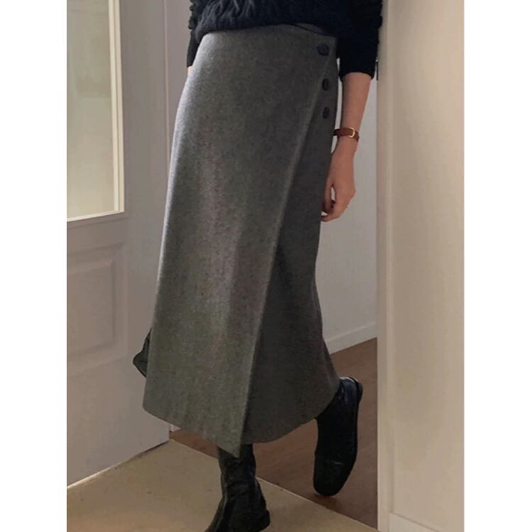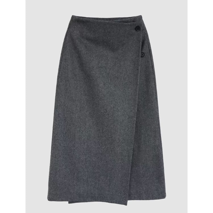 ミディ丈 ボタン留め ラップスカート 1col N00156