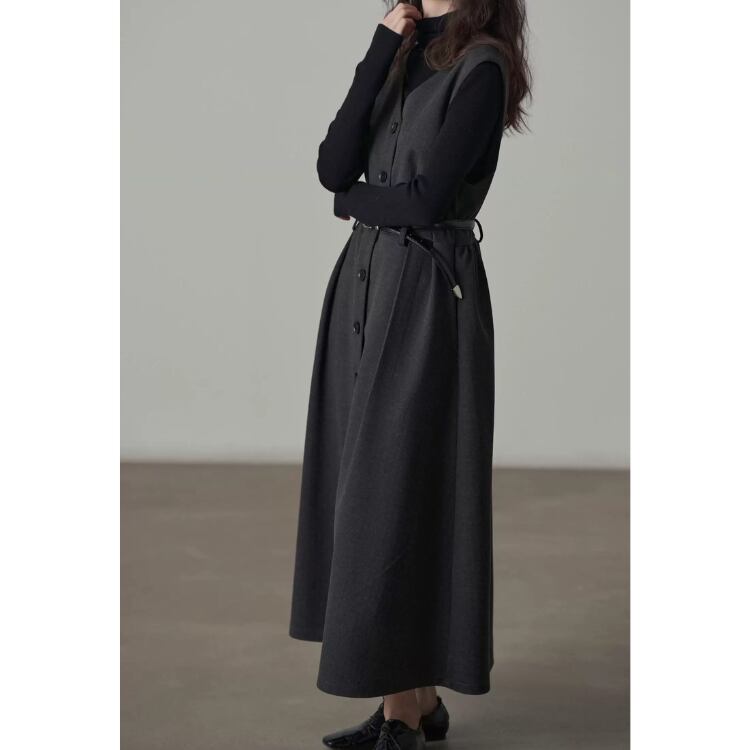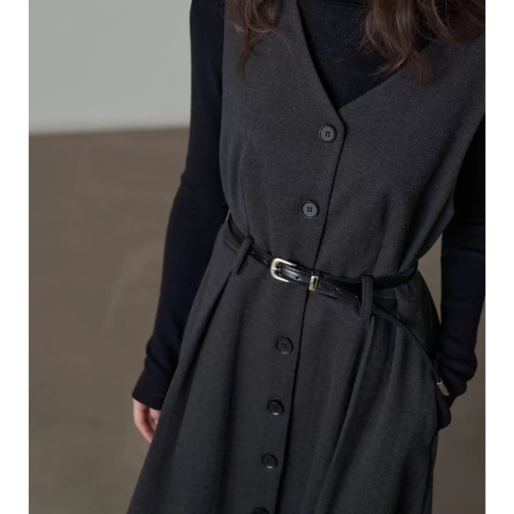 Vネックへリンボーン ジレワンピ 1col N00160