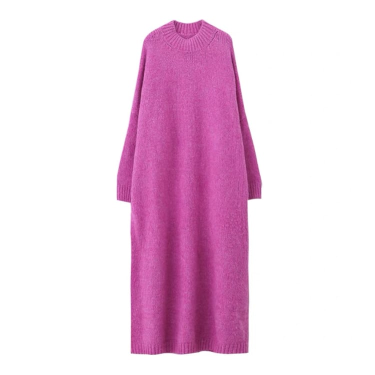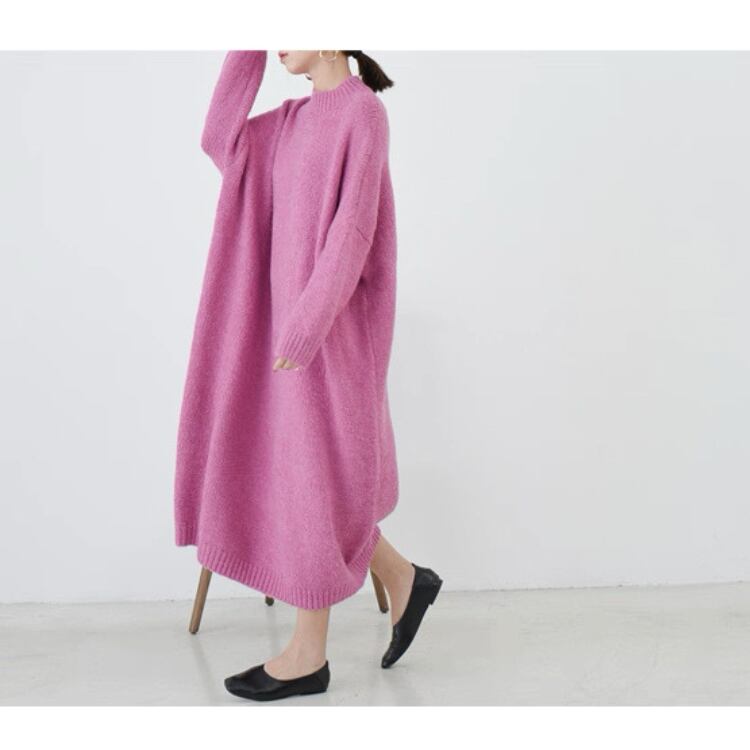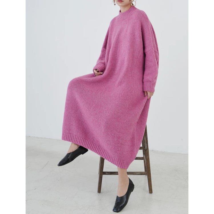 大人可愛い着こなしが叶う、モックネックのロングニットワンピース。