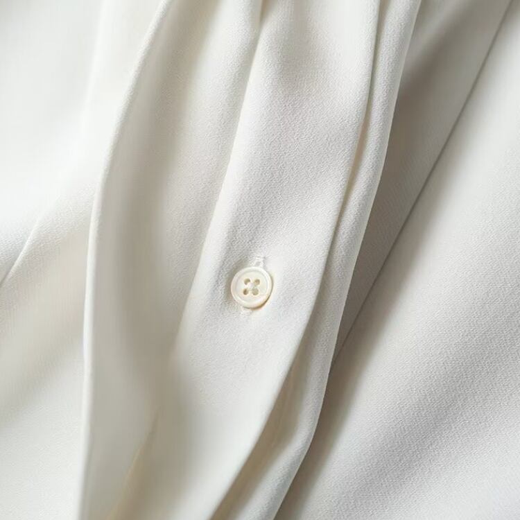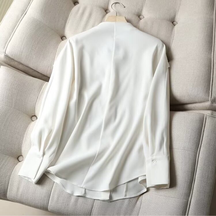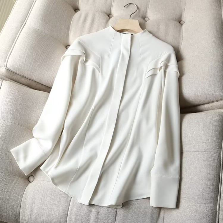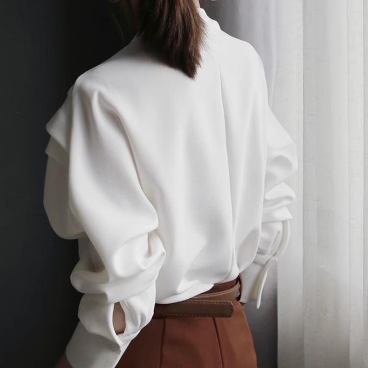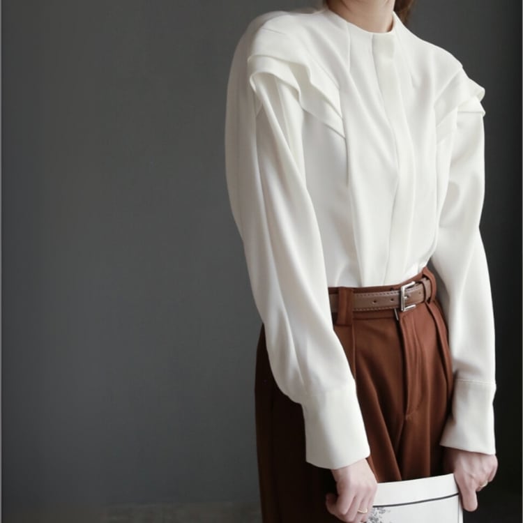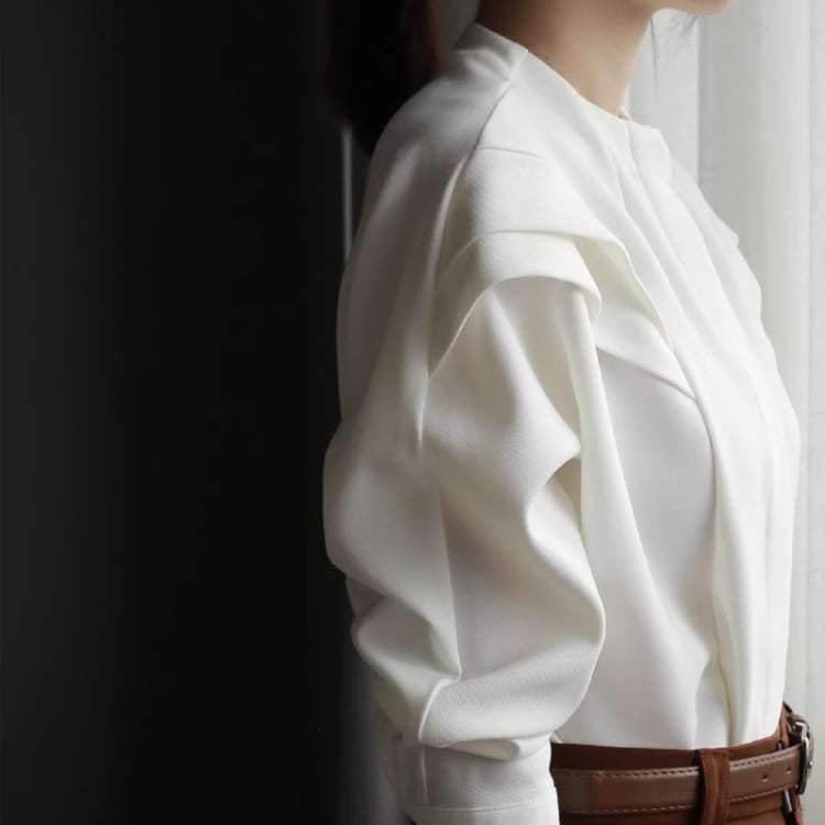 着心地の良さと上品さを兼ね備えた、比翼仕立てのブラウスです。
