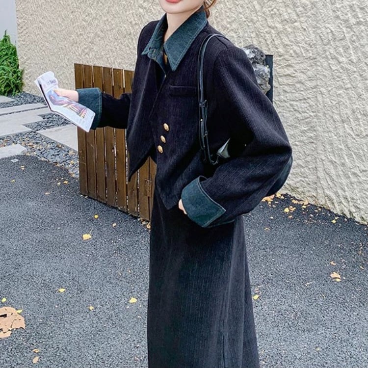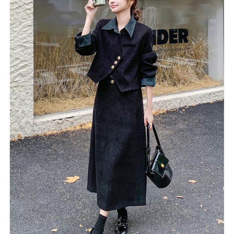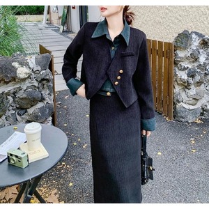 上品なコーデュロイ素材が魅力のツーピースセットアップ。