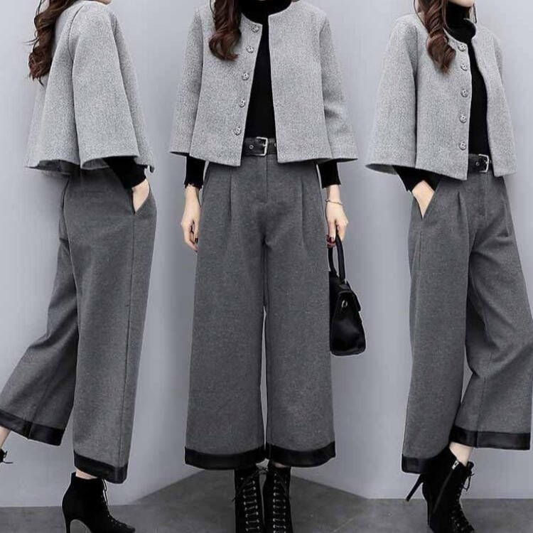 ノーカラー 七分袖ジャケット&ワイドレッグパンツ セットアップ 1col N00174