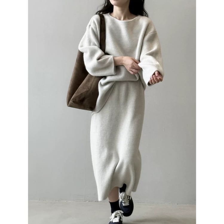 ゆるっとシルエットが魅力の大人ニットセットアップ。