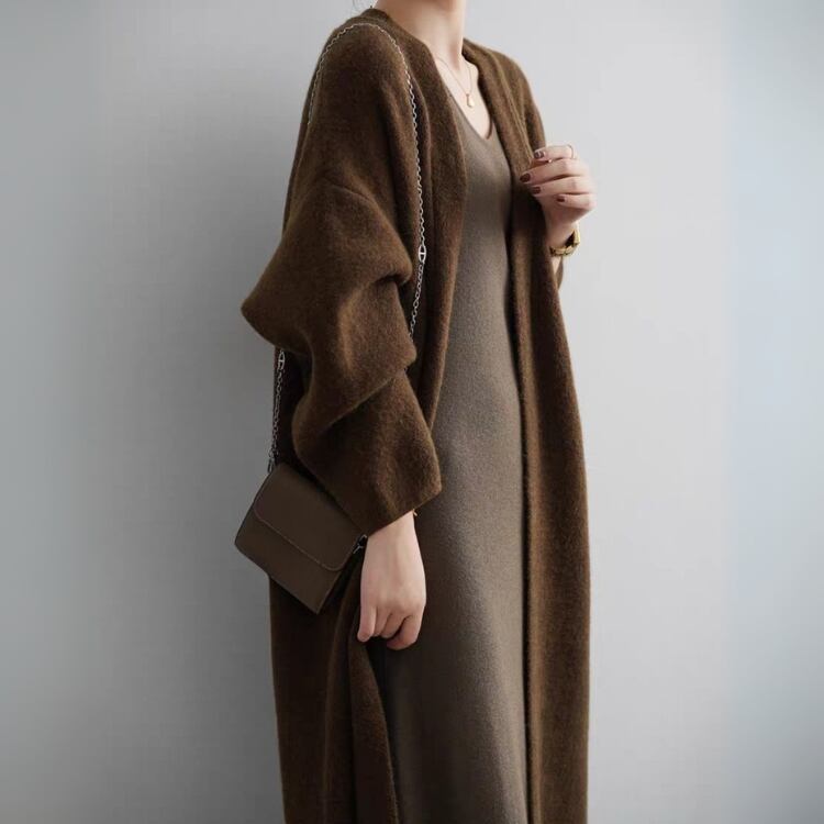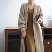 長すぎないロング丈と、シンプルな形が合わせやすいカーディガン。