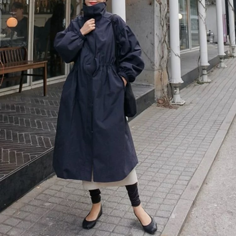 ルーズフィット スタンドカラー ロングコート 2col N00193