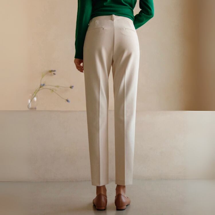 上品な素材感とセンタープレスが、オフィスシーンはもちろん、きれいめカジュアルにも活躍する万能な一本です。