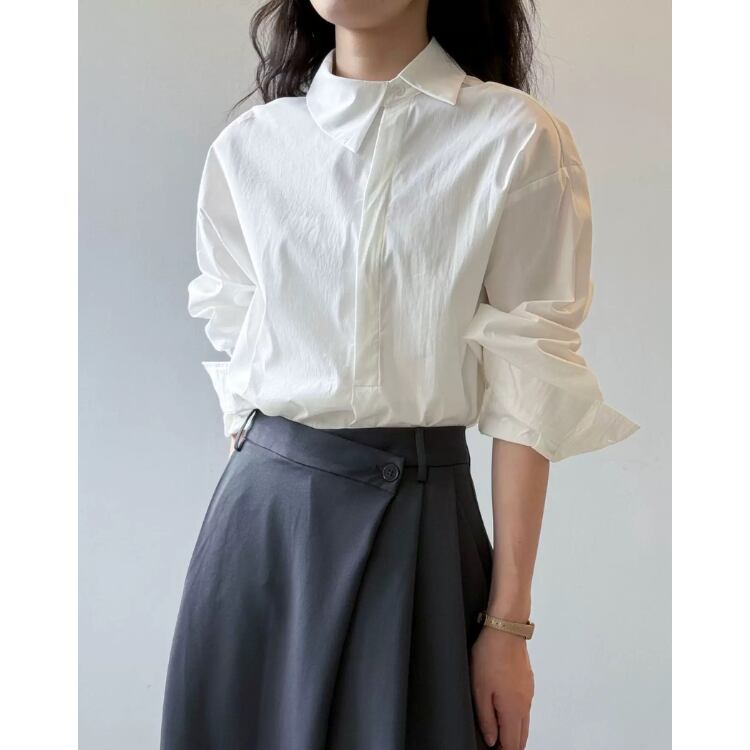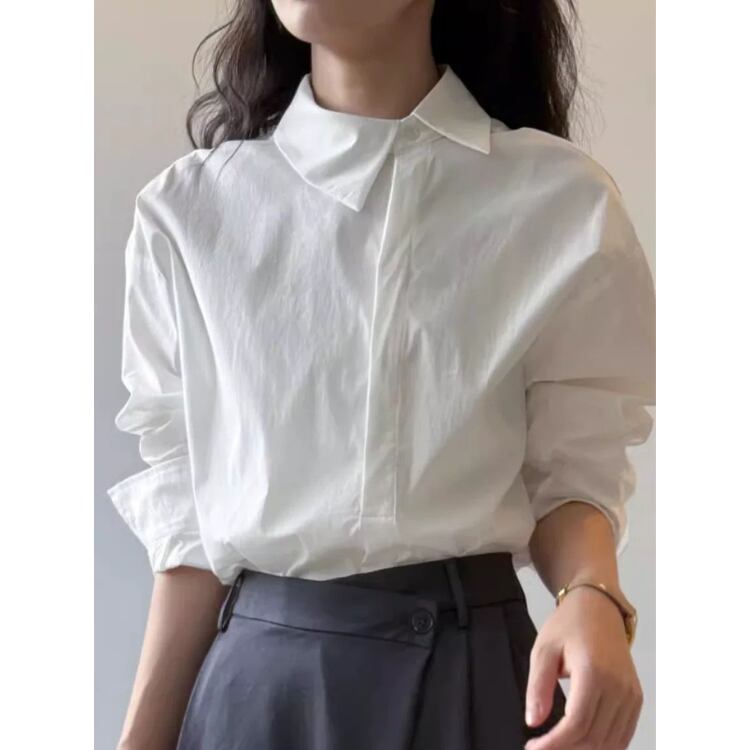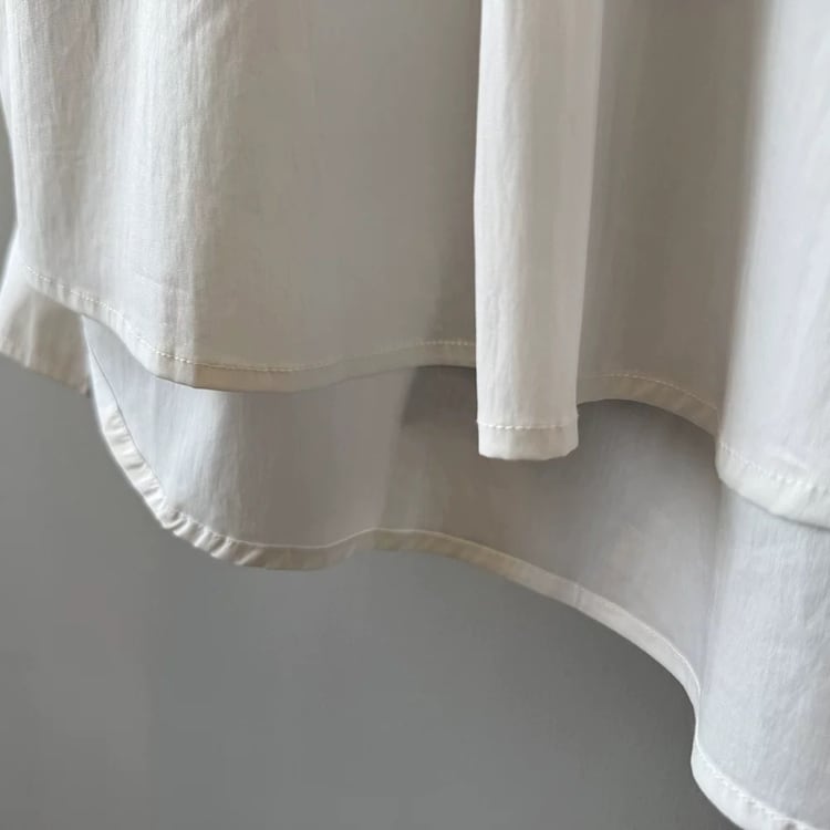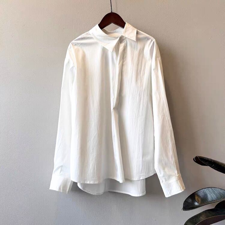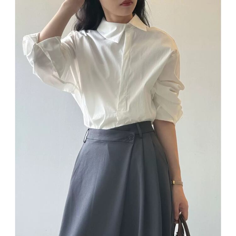 シンプルなデザインの中に、オフセットの襟がさりげない個性を演出します。