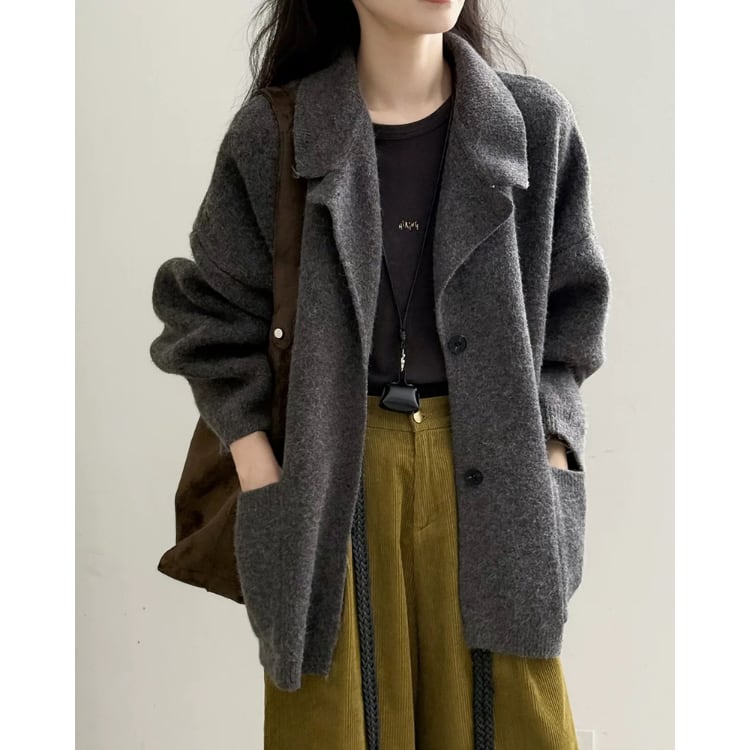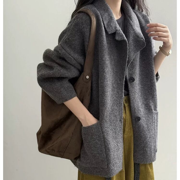パッチポケット ドロップショルダー ニットカーディガン 2col N00208