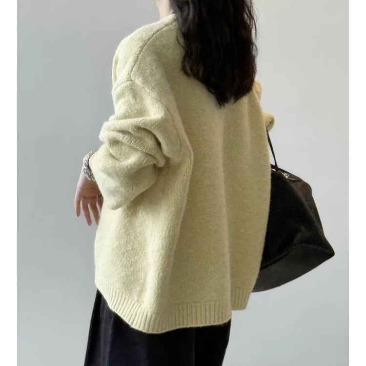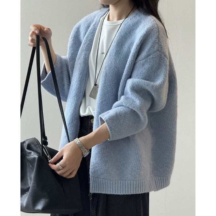 ドロップショルダー ヒップ丈 ニットカーディガン 5col N00211