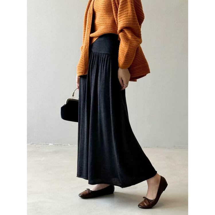 大人リラックススタイルにぴったりのマキシ丈フレアスカート。