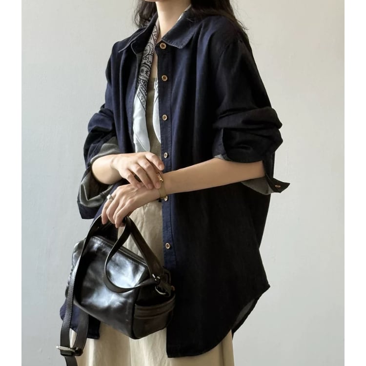 カジュアルなレイヤードスタイルにぴったりの長袖シャツジャケットとインナーのセット。