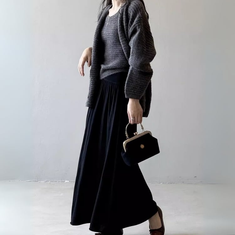 アンサンブルで着こなせば、統一感のある上品なスタイリングが完成します。