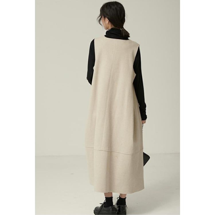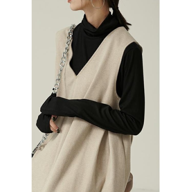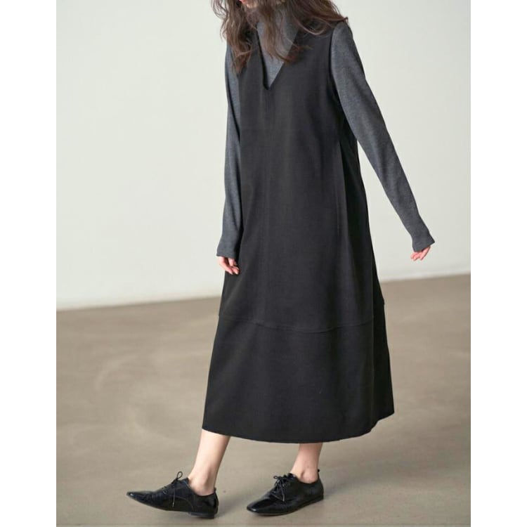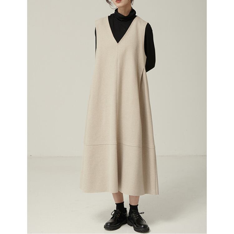 Vネック ノースリーブ Aライン ワンピース 2col N00221