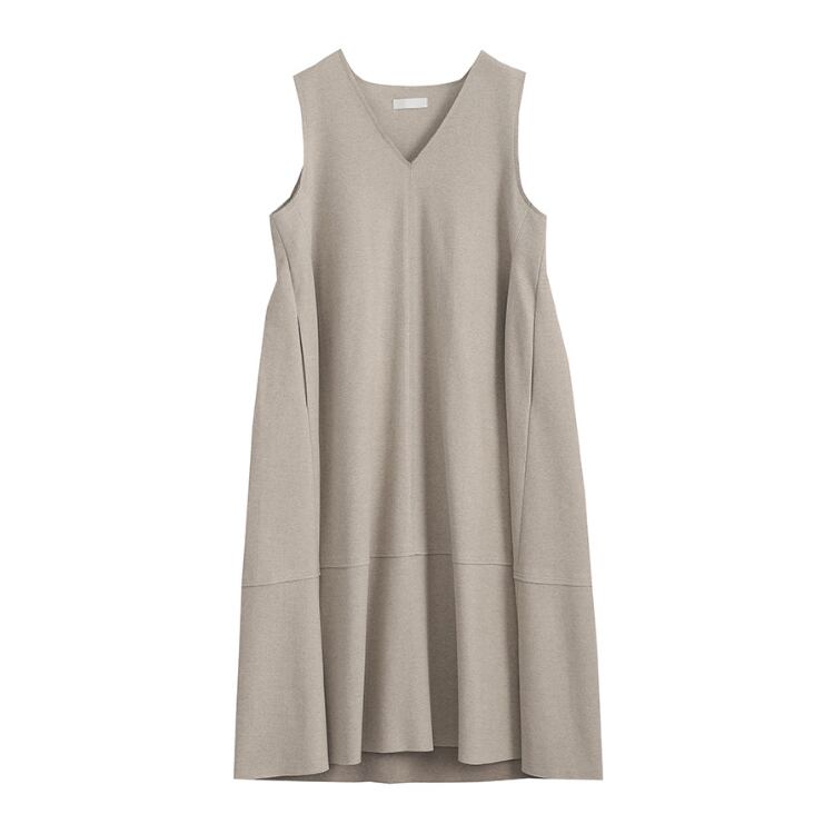 上品なVネックとAラインシルエットが女性らしさを引き立てるノースリーブワンピース。