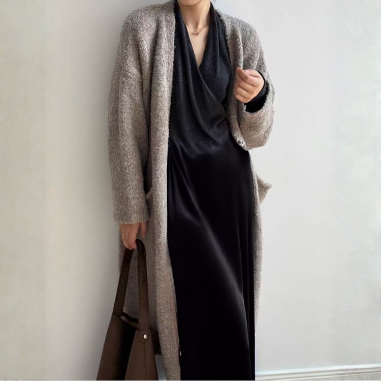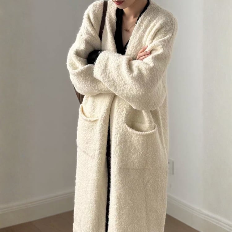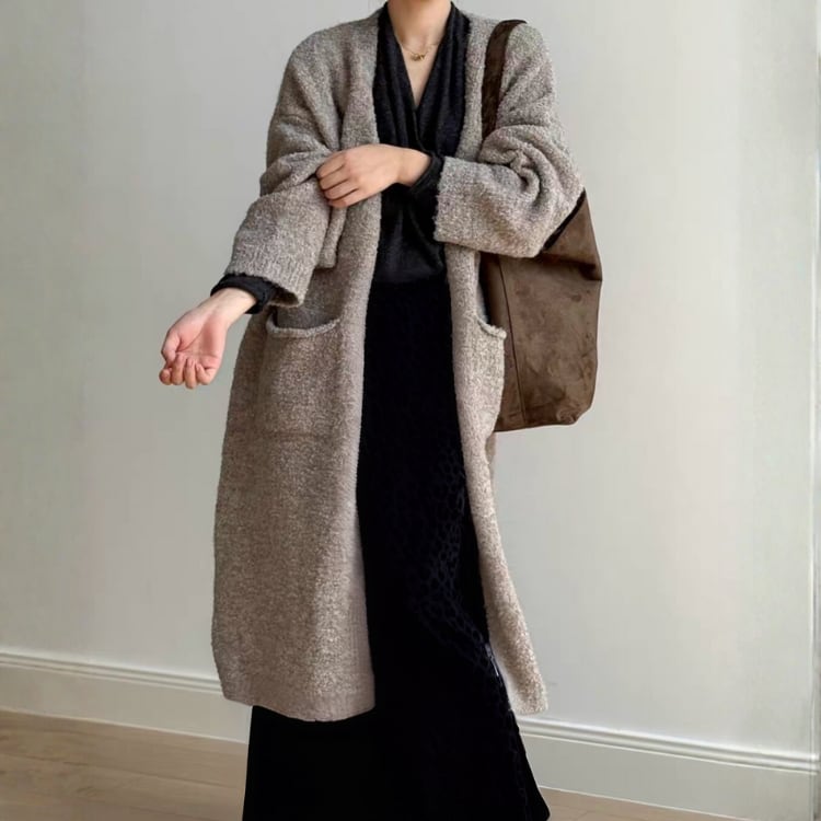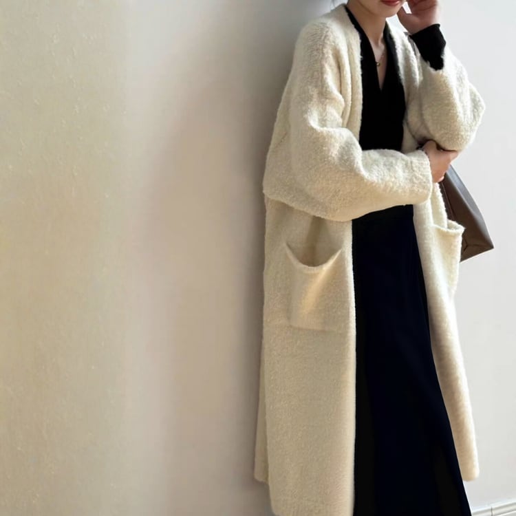 オープンフロント もこもこ ロングカーディガン 4col N00226